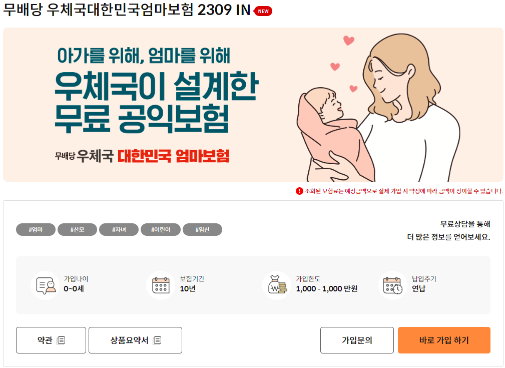 주변에 우체국 금융창구에 방문하셔서 우체국대한민국엄마보험 신청한다고 하시면 친절하게 도와주실 것입니다.